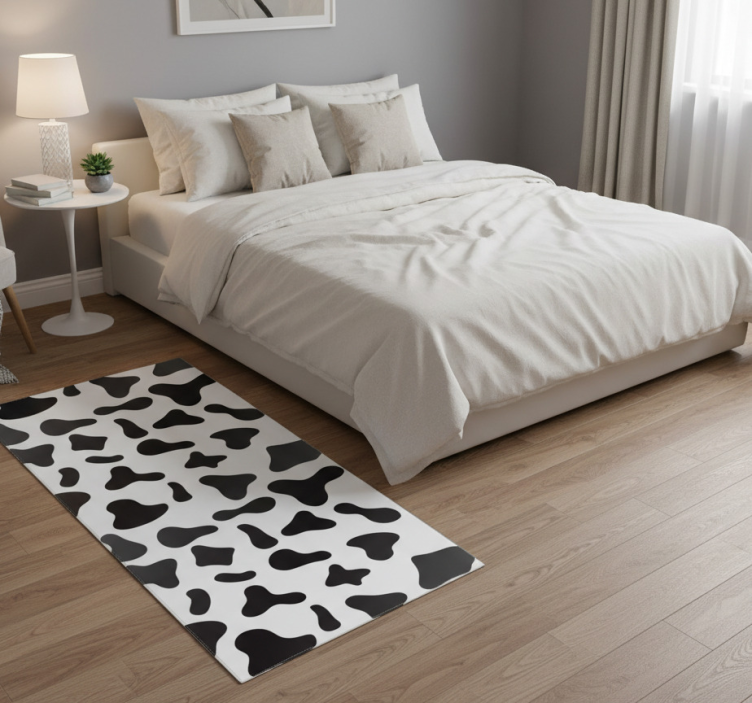 Referencia: R21533La alfombra vinílica animal print estampado de vaca es una pieza única que transformará cualquier espacio en un lugar acogedor y lleno de estilo. Su diseño audaz presenta un encantador estampado de vaca, que combina tonos blancos y negros, creando un efecto visual sorprendente que aporta carácter y modernidad a tu decoración. Esta alfombra no solo es visualmente impactante, sino que también es funcional y práctica, adaptándose a tus necesidades diarias.