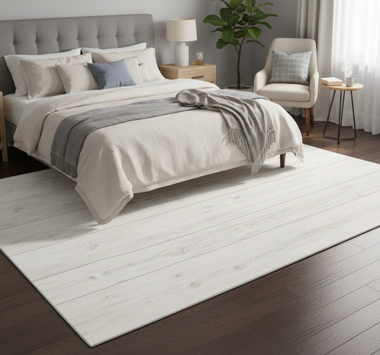 Alfombra vinílica dormitorio madera gris