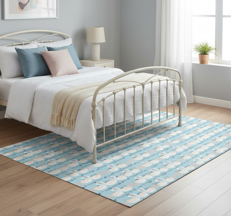 Alfombra vinílica dormitorio patrón de cisnes enamorados