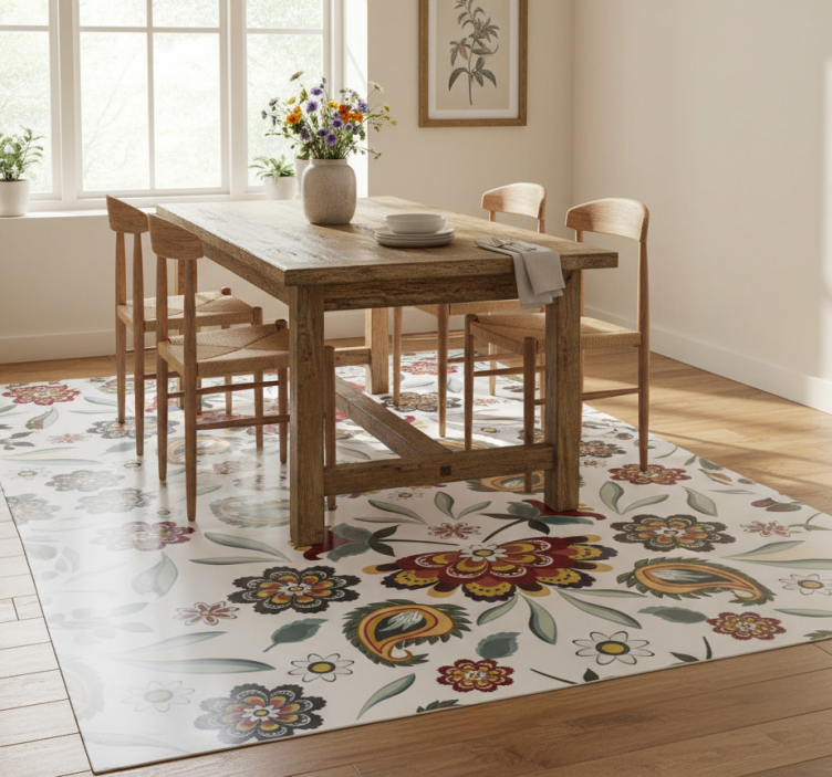 Alfombra vinílica flores estilo floral étnico