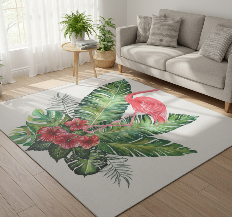 La alfombra vinílica flores flamenco tropical grande es perfecta para aquellos que desean dar un toque fresco y vibrante a su hogar. Su diseño artístico y colorido no solo embellece el ambiente, sino que también invita a la creatividad y la alegría. Ideal para salones, habitaciones o espacios exteriores cubiertos, esta alfombra se convierte en el centro de atención y en un punto de conversación entre amigos y familiares. ¡Deja que tu hogar brille con su esplendor tropical!
