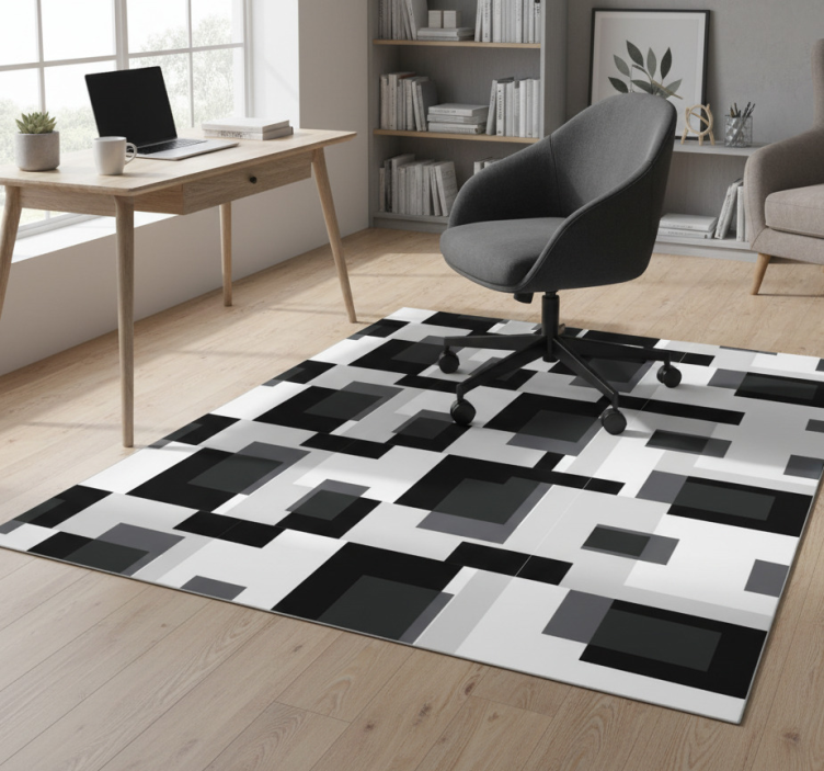 Alfombra vinílica geométrica bloques en blanco y negro