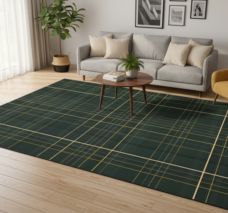 Alfombra vinílica geométrica patrón escocés verde oscuro