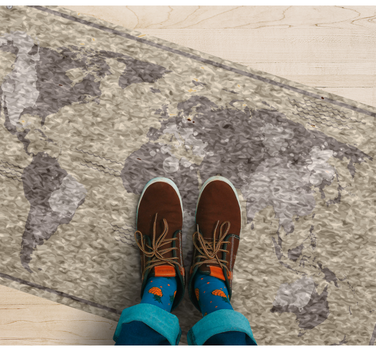 Descubre la Alfombra vinílica mapamundi ilustración mundial, una obra de arte que transforma cualquier espacio con su diseño único. Este mapa del mundo presenta una textura geográfica que evoca un sentido de globalidad, combinando colores neutros que se integran armoniosamente en tu hogar. ¡Es perfecta para aquellos que aman explorar y soñar con nuevos destinos!