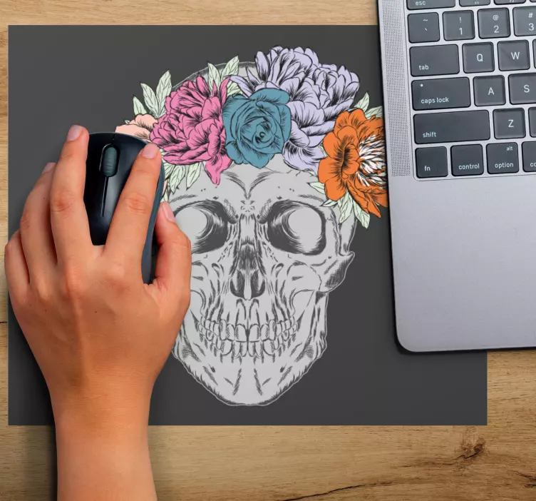 Referencia: N2019Alfombrilla de ratón original con diseño de calavera y flores de colores