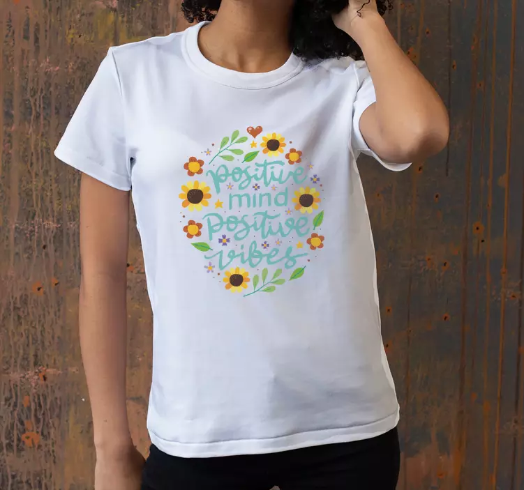 La camiseta buenas vibras mentales es una prenda vibrante y llena de energía positiva. Su diseño gráfico destaca por un hermoso girasol rodeado de flores que evocan la naturaleza, un corazón que simboliza el amor y mensajes motivacionales que estimulan la mente. Esta camiseta es una verdadera declaración de intenciones, perfecta para quienes buscan irradiar vibras positivas y fomentar la consciencia en su día a día.