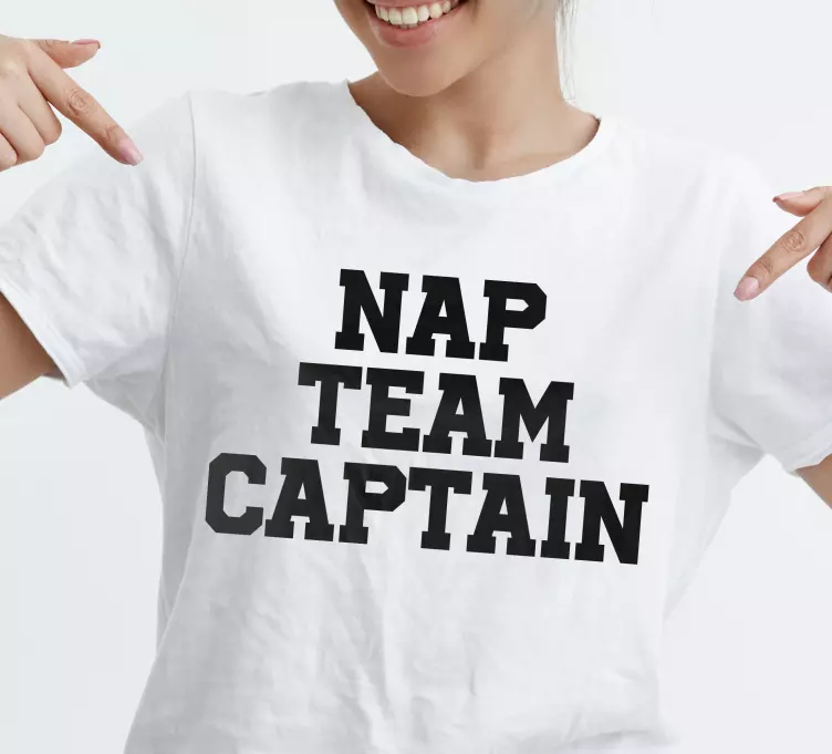¡Descubre la camiseta capitán del equipo de sueño! Este diseño único resalta la importancia de la siesta en un estilo audaz y juguetón. Con un fondo blanco, el texto humorístico destaca la esencia de un equipo que valora el descanso. Perfecta para quienes saben que el sueño es parte fundamental de la vida!