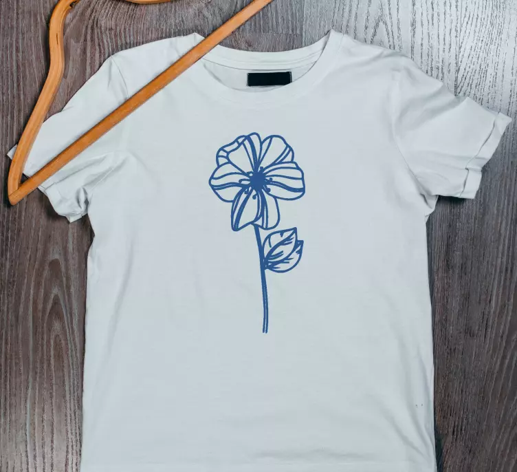 Referencia: T4406Esta prenda elegante presenta un diseño floral minimalista, mostrando una delicada flor con un tallo y una hoja graciosos. El elegante contorno azul añade un toque de sofisticación, haciéndola perfecta para el uso casual.