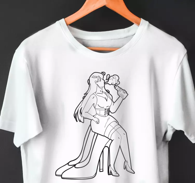 Descubre la camiseta estilo elegante de tacón alto, una prenda que combina un diseño único y sofisticado. Con una hermosa silueta dibujada a mano, esta camiseta resalta la esencia de la mujer moderna que disfruta de su propia elegancia. El bosquejo artístico de tacones altos y un delicado toque de fumar con vaporizador en la ilustración, hace que esta pieza sea ideal para cualquier evento de moda o cóctel. ¡Luce increíble y siéntete segura con esta camiseta excepcional!