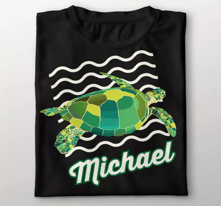 Descubre la Camiseta ilustración de tortuga marina verde, una prenda única que captura la esencia del océano con su diseño alegre y juguetón. Con una adorable tortuga nadando entre ondas y rayas, esta ilustración en estilo dibujo animado te transportará a un mundo marítimo lleno de vida. Personaliza tu camiseta con tu nombre y lleva contigo un pedacito del mar que simboliza la conexión con la naturaleza y la diversión de ser un marinero en el fondo del océano.