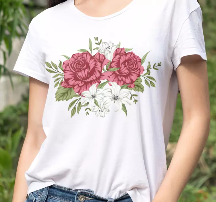 Referencia: T4320Este diseño presenta rosas y lirios en flor, simbolizando belleza y elegancia. Los colores vibrantes destacan, creando un atractivo visual impactante. Perfecto para el uso casual, muestra una mezcla armoniosa de elementos florales, convirtiéndose en una elección ideal para cualquiera que quiera transmitir una vibra fresca y alegre.
