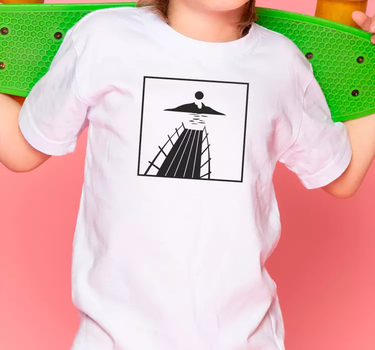 Camiseta niños atardecer sobre el muelle