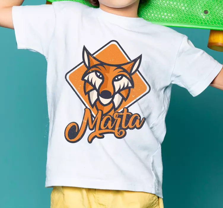 Referencia: T4980Este diseño cautivador presenta una ilustración de un zorro llamativo con colores vibrantes y elementos juguetones, personalizado con el nombre 'Marta'. Perfecto para niños, combina diversión y creatividad, haciendo que cada pieza sea única y especial.