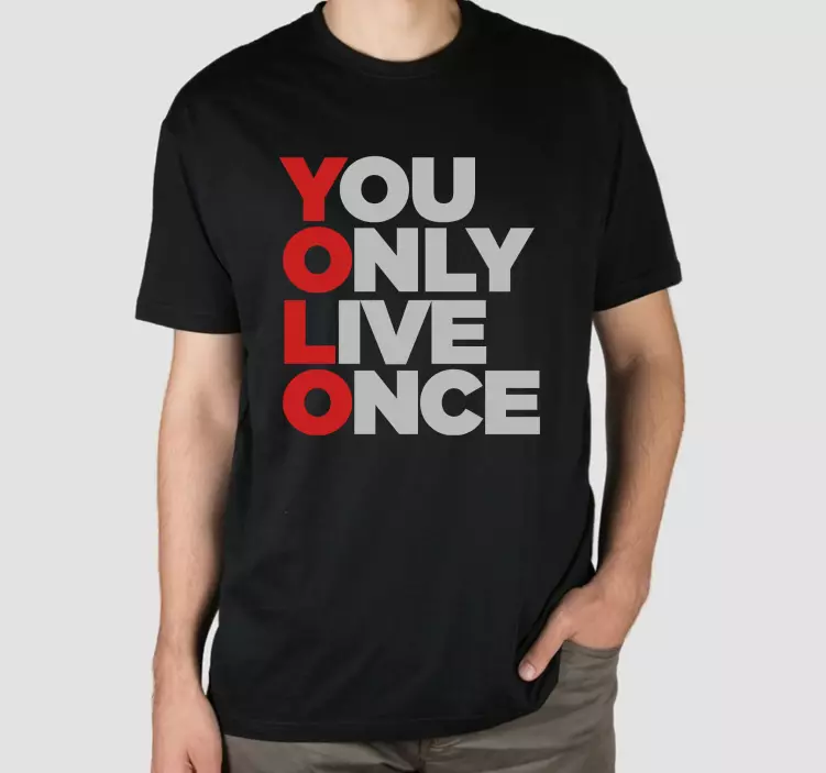 Referencia: T4851Esta ropa audaz presenta la frase impactante 'You Only Live Once', enfatizando un mensaje de vivir la vida al máximo. El diseño utiliza una tipografía fuerte con colores contrastantes, haciéndolo llamativo y atractivo para aquellos que buscan expresar una actitud vibrante.