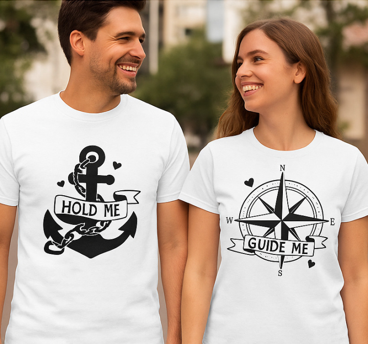 Cuidar de tus camisetas parejas abrázame - guíame es sencillo. Se pueden lavar a máquina a 30 grados, asegurando que se mantengan en perfectas condiciones. Para la plancha, recomendamos hacerlo del revés o utilizar una tela barrera sobre el diseño. Así, podrás disfrutar de su frescura y color por mucho más tiempo.