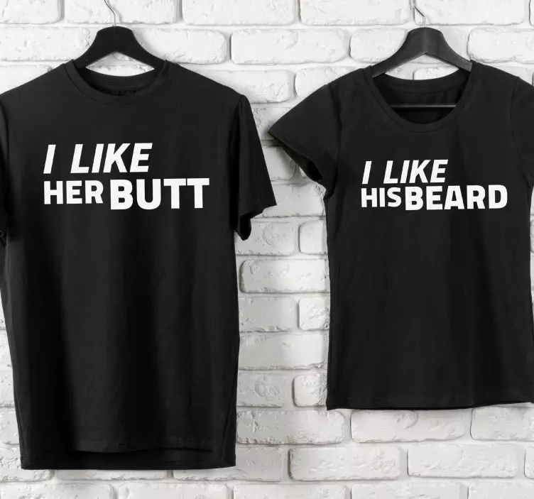 ¡Dale un toque de humor a tu relación con nuestras camisetas parejas de humor para parejas! Este diseño gráfico es una explosión de diversión, con un estilo monocolor en negro que resalta frases graciosas. Cada camiseta presenta un diseño que incluye elementos como 'me gusta', 'extremo', y 'barba', perfecto para esos momentos en pareja que merecen ser celebrados con una sonrisa.