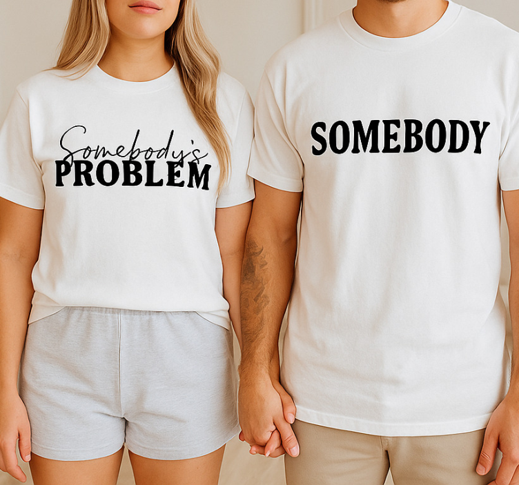 Las camisetas parejas problema de alguien son más que una simple prenda; son una forma de expresar amor y complicidad con un toque de humor. Al vestirlas, no solo muestras tu conexión con esa persona especial, sino que también invitas a los demás a sonreír y a disfrutar de la vida. Cada vez que las lleves puestas, recordarás momentos divertidos y únicos que solo tú y tu pareja pueden compartir. ¡Es un símbolo de unión que nunca pasa de moda!