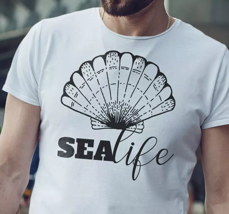 Referencia: T5387Este diseño presenta una hermosa ilustración de una concha sobre la palabra 'SEAlife' en estilos contrastantes. La paleta de colores en blanco y negro realza el atractivo estético, haciéndolo perfecto para el uso casual. Ideal para entusiastas del océano y amantes de la naturaleza.