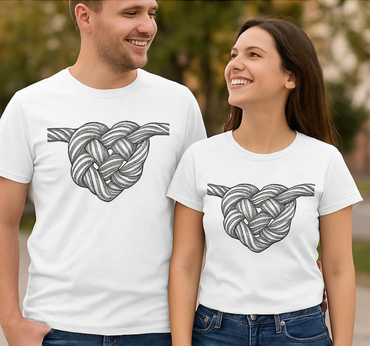 Camisetas parejas nudos en forma de corazón