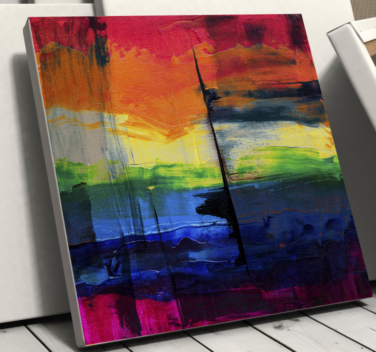 Descubre el Cuadro abstracto rayas de color vívido, una magnífica obra que captura la esencia del arte moderno. Este diseño abstracto en acuarela presenta un patrón horizontal de rayas vistosas y vibrantes, creando un estampado pintado que alegrará cualquier espacio. Su colorido y su energía lo convierten en un elemento perfecto para dar vida a tus paredes.
