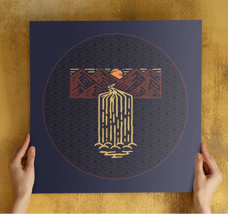 Descubre la belleza de la naturaleza con nuestro Cuadro paisajes escenario de cascada serena. Este impresionante diseño presenta una cascada rodeada de montañas, bajo un sol que resplandece en tonos púrpura, lila y morado. Con un patrón geométrico y minimalista, este dibujo de estilo africano se destaca con su forma ronda y abstracta, capturando la esencia de un atardecer en la naturaleza. ¡Un deleite visual que transformará cualquier espacio!