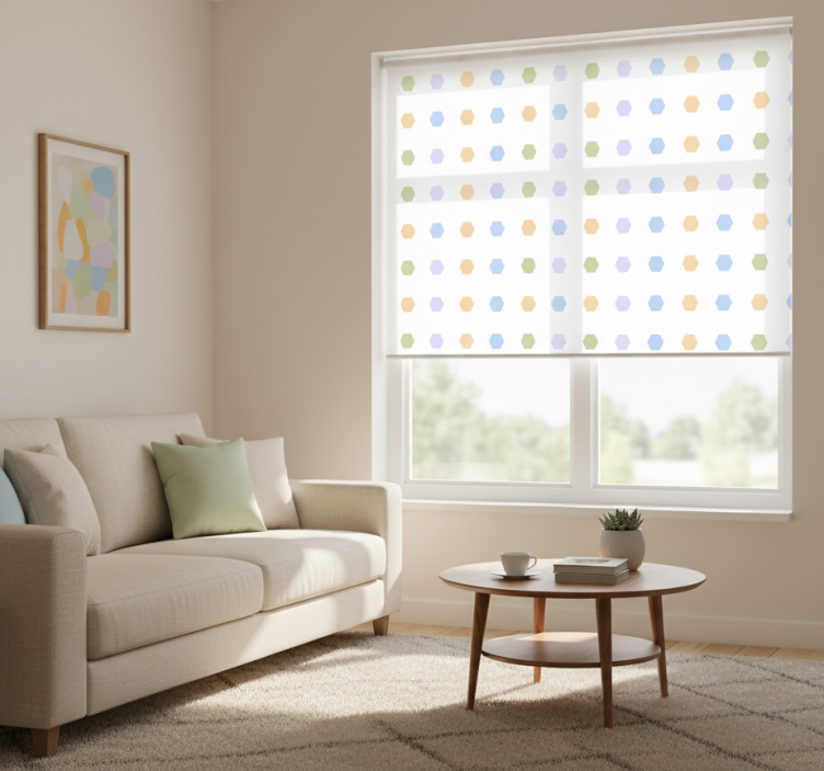 Persiana enrollable moderno hexágonos multicolor fondo claro