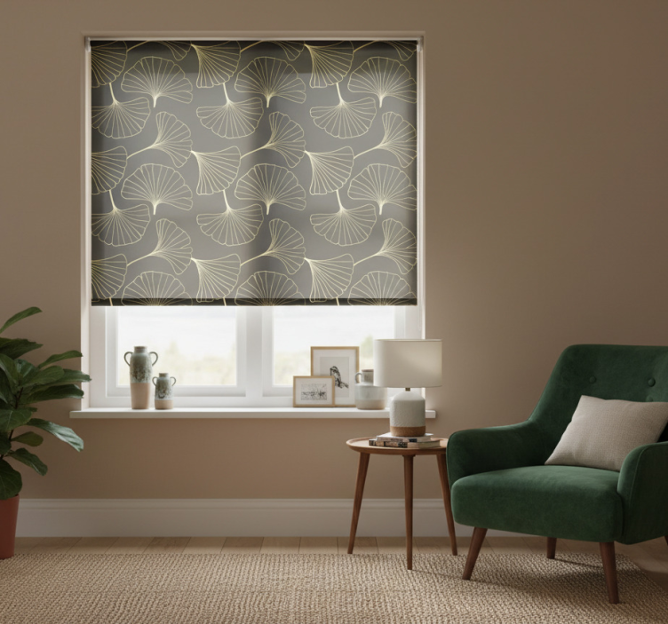 Persiana enrollable moderno hojas de ginkgo oro carbón