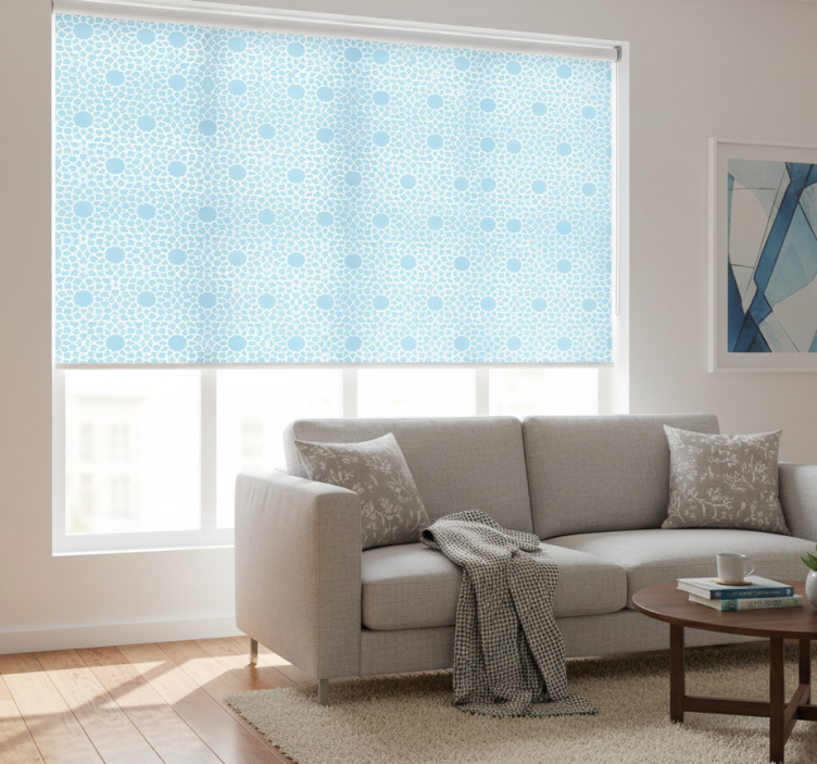 Persiana enrollable moderno patrón geométrico azul y blanco