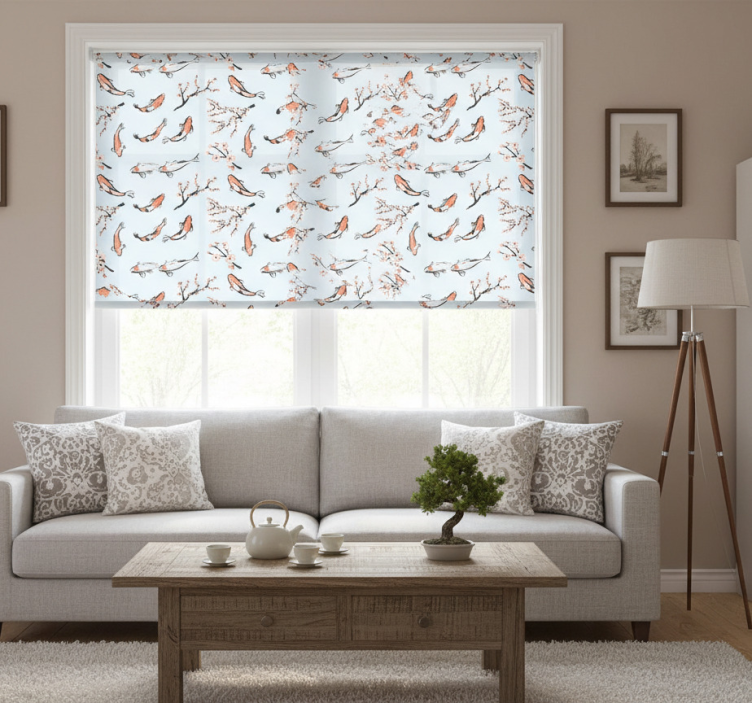 Persiana enrollable moderno peces koi y ramas de cerezo