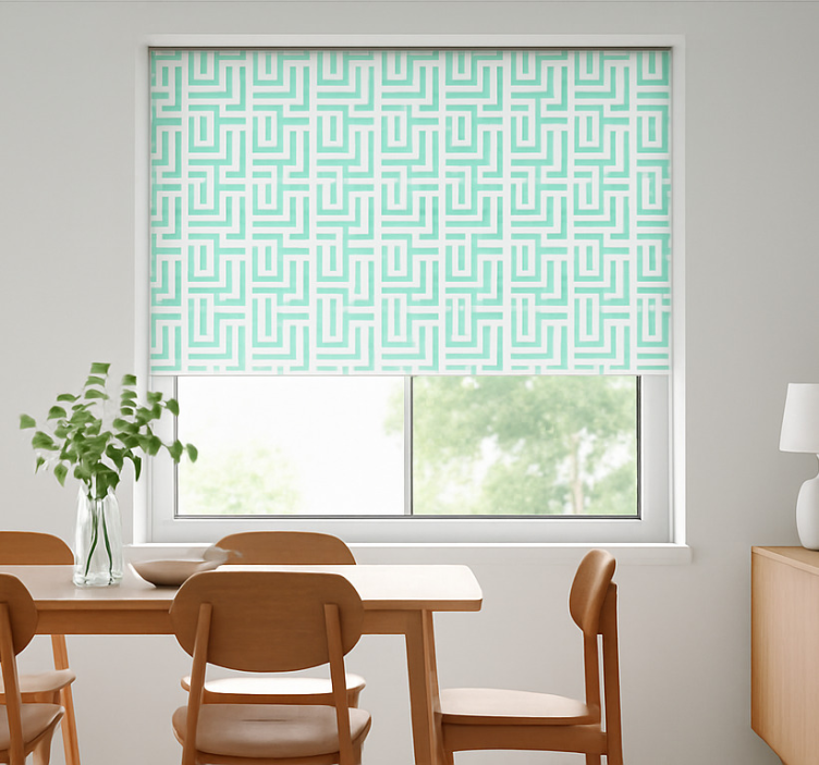 Persiana enrollable para comedor efecto de cuadrados geométricos