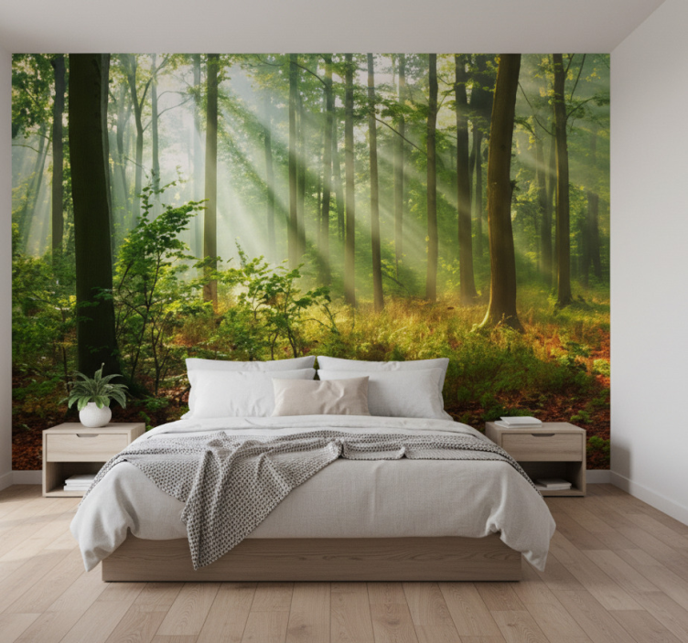 Mural de bosque arboleda de la mañana soleada