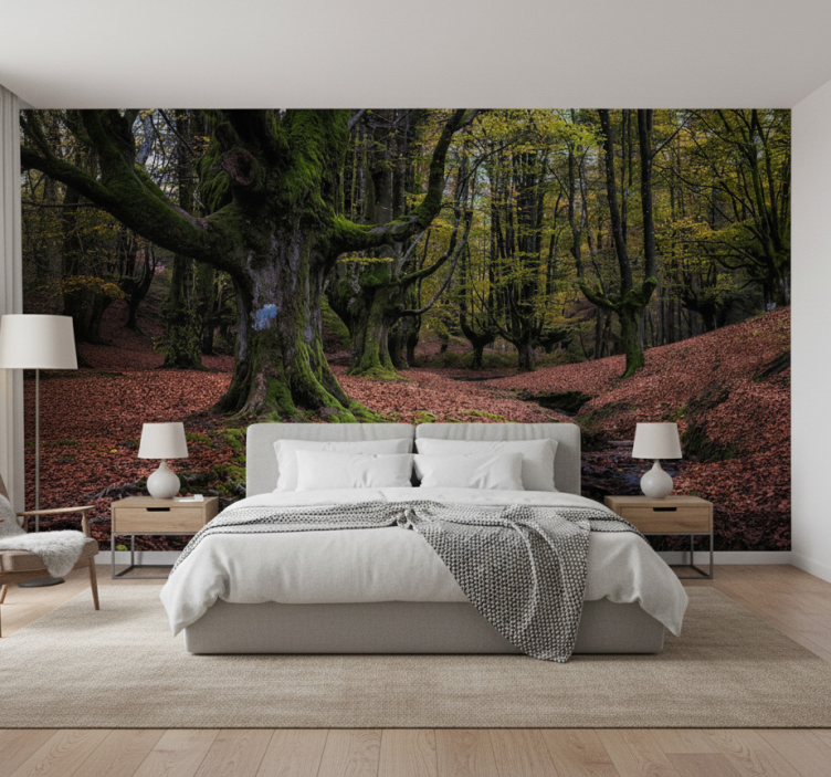 El Mural de bosque mural de bosque bosque de otoño encantado es la elección perfecta para quienes buscan una decoración que inspire tranquilidad y belleza. Imagina entrar a una habitación donde las hojas doradas y los troncos robustos te envuelven en un abrazo natural. Este mural no solo embellece tus paredes, sino que también crea una atmósfera de ensueño que estimulará tu imaginación y la de tus invitados. ¡Haz de tu hogar un lugar mágico!