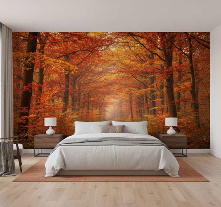 Referencia: F11918Descubre la belleza natural de un Mural de bosque camino de árboles en otoño, donde los tonos cálidos de las hojas caídas se combinan con la tranquilidad de un sendero rodeado de árboles. Este diseño cautivador te transportará a un sereno bosque en plena temporada de otoño, creando una atmósfera acogedora y relajante en cualquier espacio. Con colores mate que aportan un toque elegante, este mural está fabricado en papel tapiz no tejido, garantizando durabilidad y estilo.