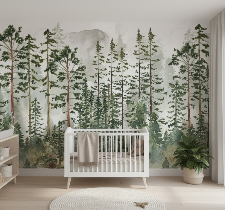 Mural de bosque decoración de pared para nursery