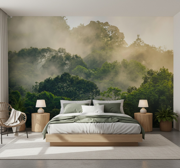 Mural de bosque dosel de selva exuberante