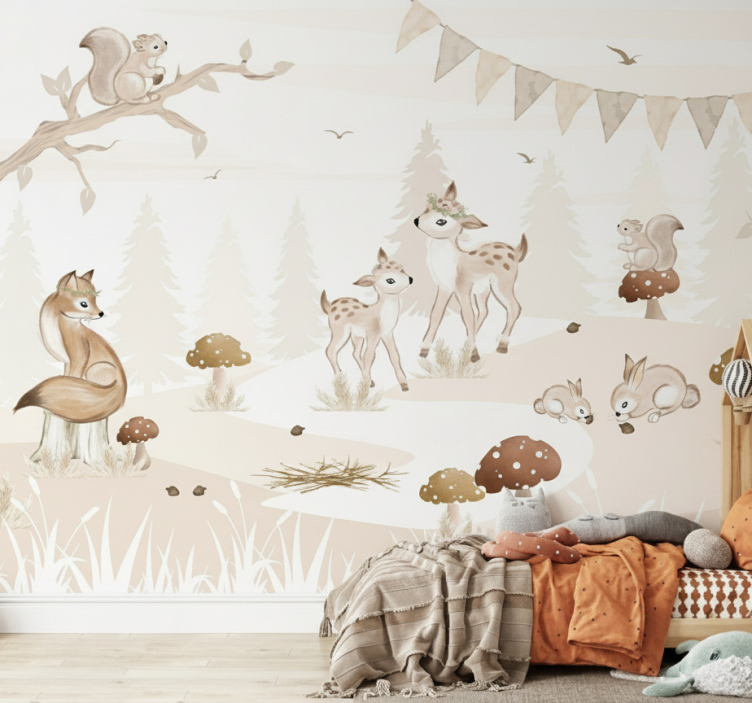 Mural de bosque habitación infantil encantadora