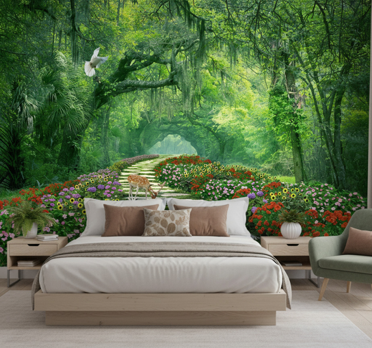 Mural de bosque sendero surrealista
