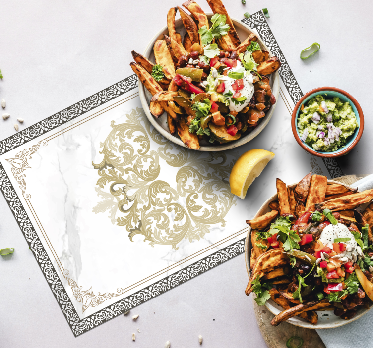 Descubre la elegancia y sofisticación que aporta el Mantel individual elegante mármol blanco barroco a tu mesa. Con un diseño barroco que evoca la opulencia, este mantel presenta un patrón intrincado que recuerda a las decoraciones de un lujoso restaurante. Su acabado en mármol blanco le otorga un toque moderno y fresco, perfecto para cualquier ajuste de la tabla, ya sea en una cena formal o un almuerzo casual.
