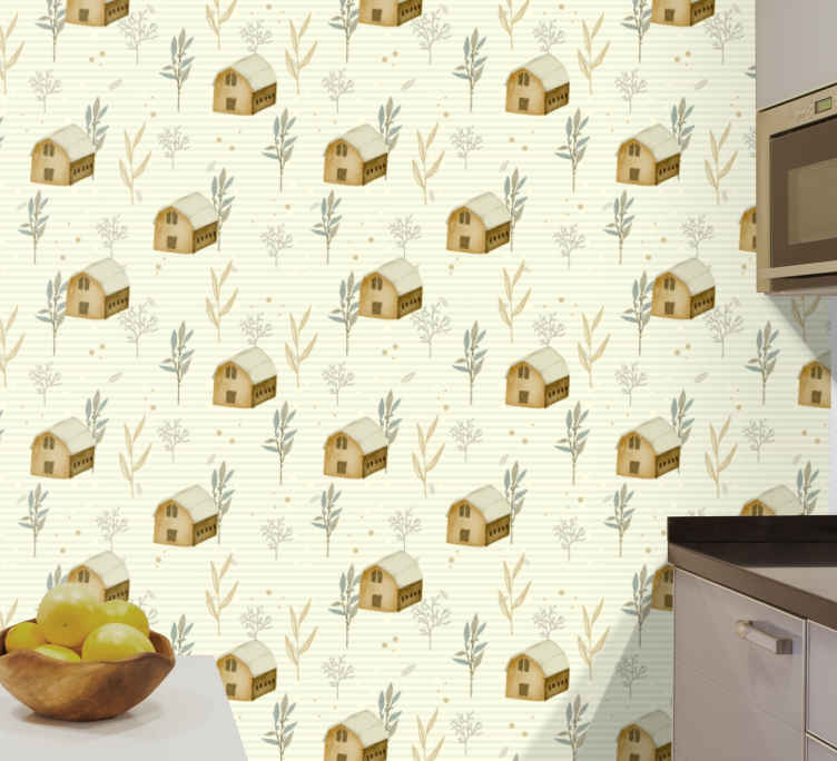 de estilo vintage que cuenta con varias casas e ilustraciones de la naturaleza. Es muy fácil de aplicar con las herramientas adecuadas y no se desvanece ni se ve afectado por factores externos. Además, en nuestro sitio web encontrarás otrosfotomurales