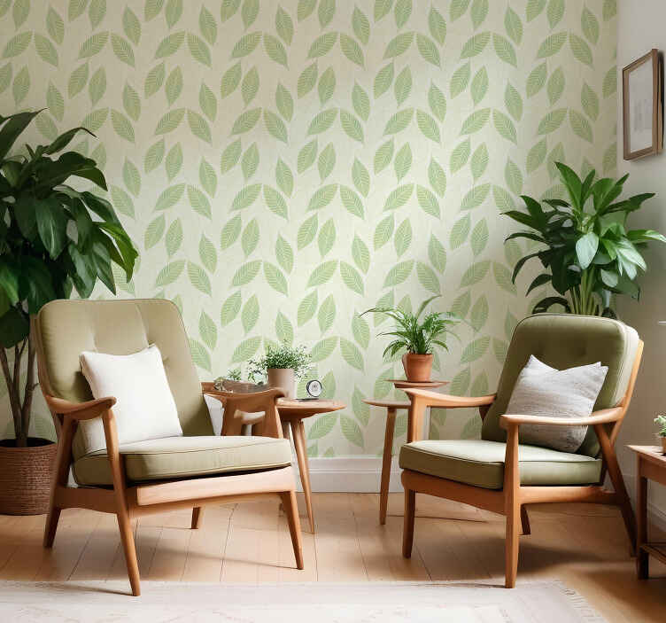 El diseño del papel tapiz hojas ambiente frondoso es una representación gráfica de la naturaleza, con un patrón de hojas verdes que evoca un ambiente botánico y un follaje exuberante. Inspirado en la naturaleza, este estampado aporta frescura y vitalidad a cualquier espacio.