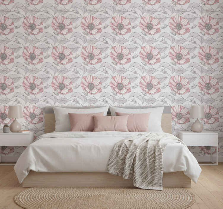 Papel tapiz para recámara diseño magnolia rosa elegante