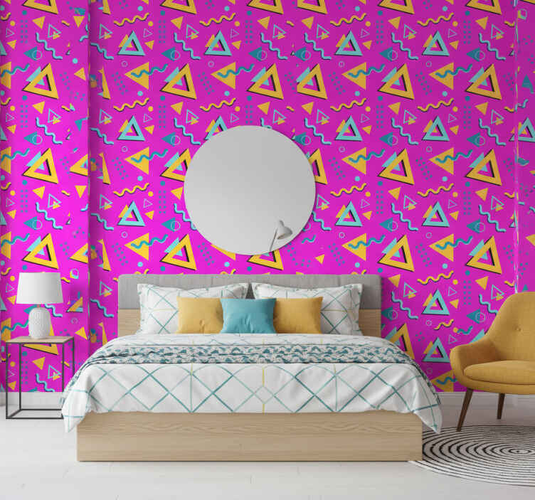 Papel tapiz para recámara formas geométricas retro 80