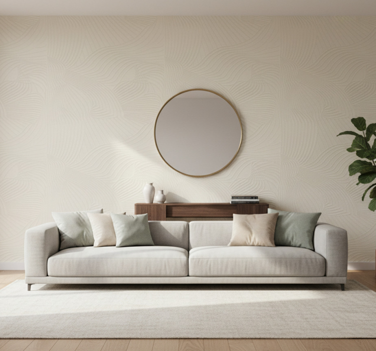 Papel tapiz para sala crema ondas relieve