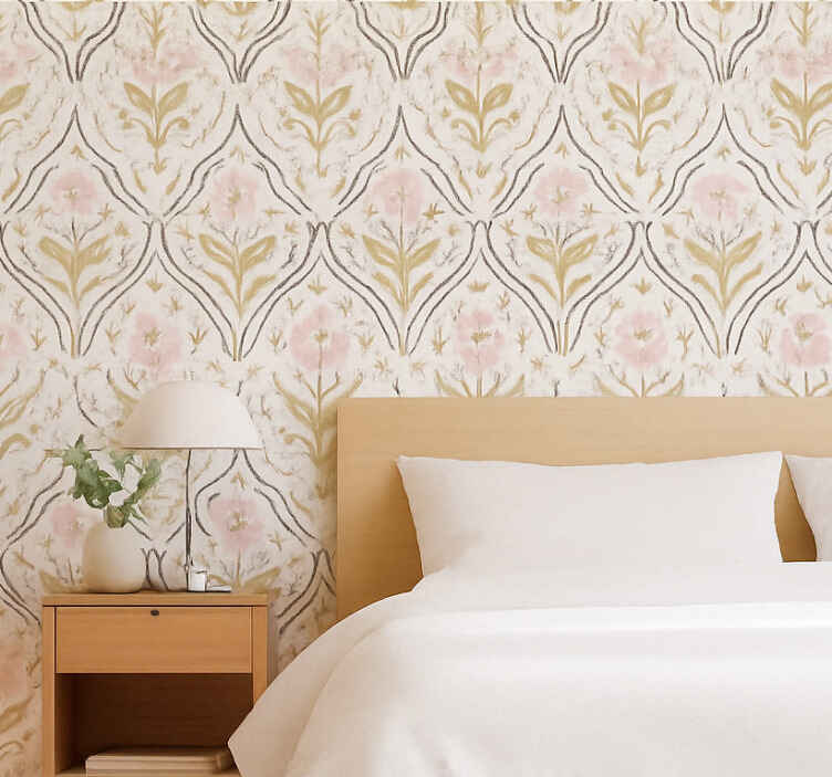 Papel tapiz patrón de flores retro rosa pálido