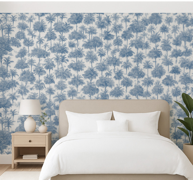 Para disfrutar de la belleza del papel tapiz textil tropical azul, simplemente aplica cola sobre la pared o directamente sobre el material. Utiliza un rodillo, una brocha, un cepillo y un cúter para un acabado perfecto. ¡Es fácil y divertido transformar tu espacio en un refugio tropical!