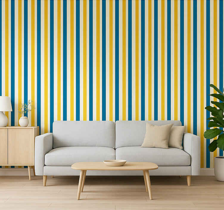 Papeles mural rayas azules y amarillas