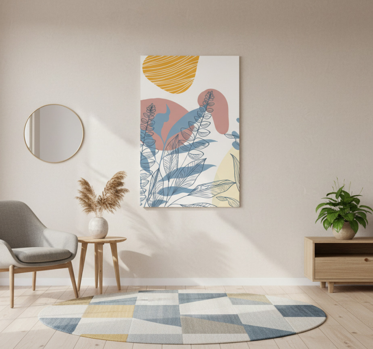 Referencia: G988Descubre nuestro Poster flores y plantas hojas abstractas escandinavas, una obra de arte que transformará tus espacios con su diseño vibrante y contemporáneo. Este magnífico cartel presenta una fusión de colores suaves y formas fluidas, evocando la esencia de la naturaleza en su máxima expresión. Con un gramaje de 180g/m2, este producto ofrece un acabado semimate que realza la intensidad de sus colores sin reflejos, haciendo que cada detalle cobre vida en tu pared.