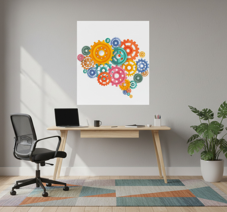 ¿Buscas inspiración y energía en tu entorno laboral? El Poster oficina engranajes de colores en el cerebro es la elección perfecta para transformar tu oficina en un lugar estimulante. Este extraordinario póster no solo embellece las paredes, sino que también potencia la creatividad y la productividad. Su diseño cautivador invita a la reflexión y a la innovación, convirtiéndose en un elemento esencial para cualquier espacio donde las ideas fluyan libremente.