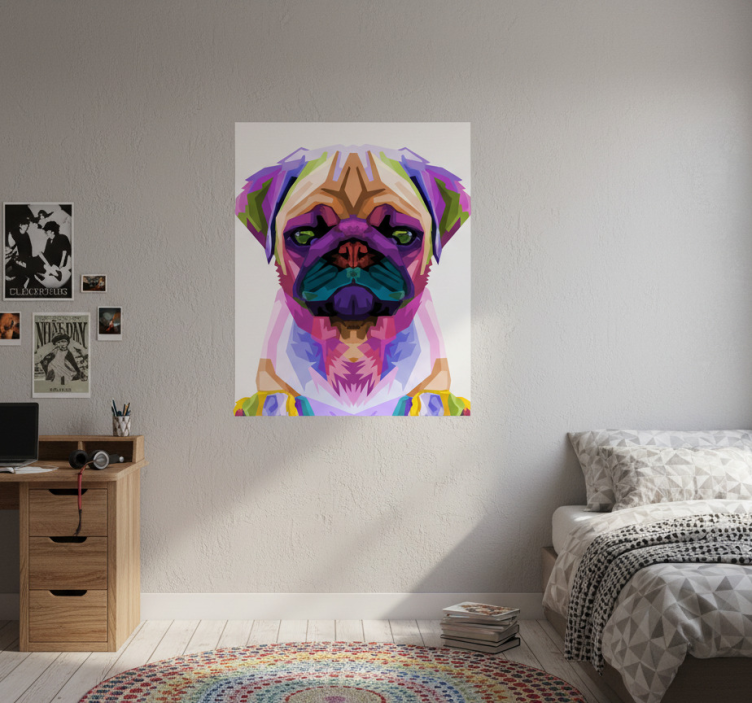Referencia: G765El Poster salón arte pop bulldog es una obra vibrante que captura la esencia del arte pop con un diseño llamativo y colorido. Con un gramaje de 180g/m2, este cartel destaca por su acabado semimate, que evita los reflejos y resalta la alta intensidad de color, convirtiéndolo en una pieza ideal para cualquier espacio. Su representación de un bulldog, en un estilo audaz y moderno, aporta un toque de diversión y personalidad a tu salón.