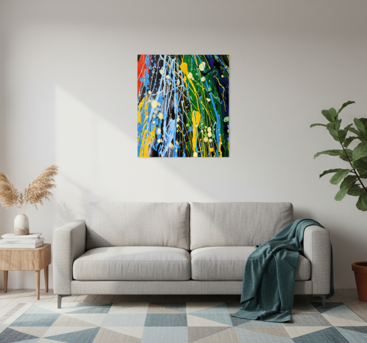 El Poster salón arte salpicadura de color arcoíris es la opción perfecta para aquellos que buscan dar vida a sus espacios. Su diseño alegre no solo embellece, sino que también inspira buenas vibras y creatividad en el ambiente. Al incluir este poster en tu decoración, estarás creando un espacio acogedor y lleno de personalidad que invita a la felicidad y a la expresión artística. ¡Deja que tu salón se transforme con esta explosión de color!